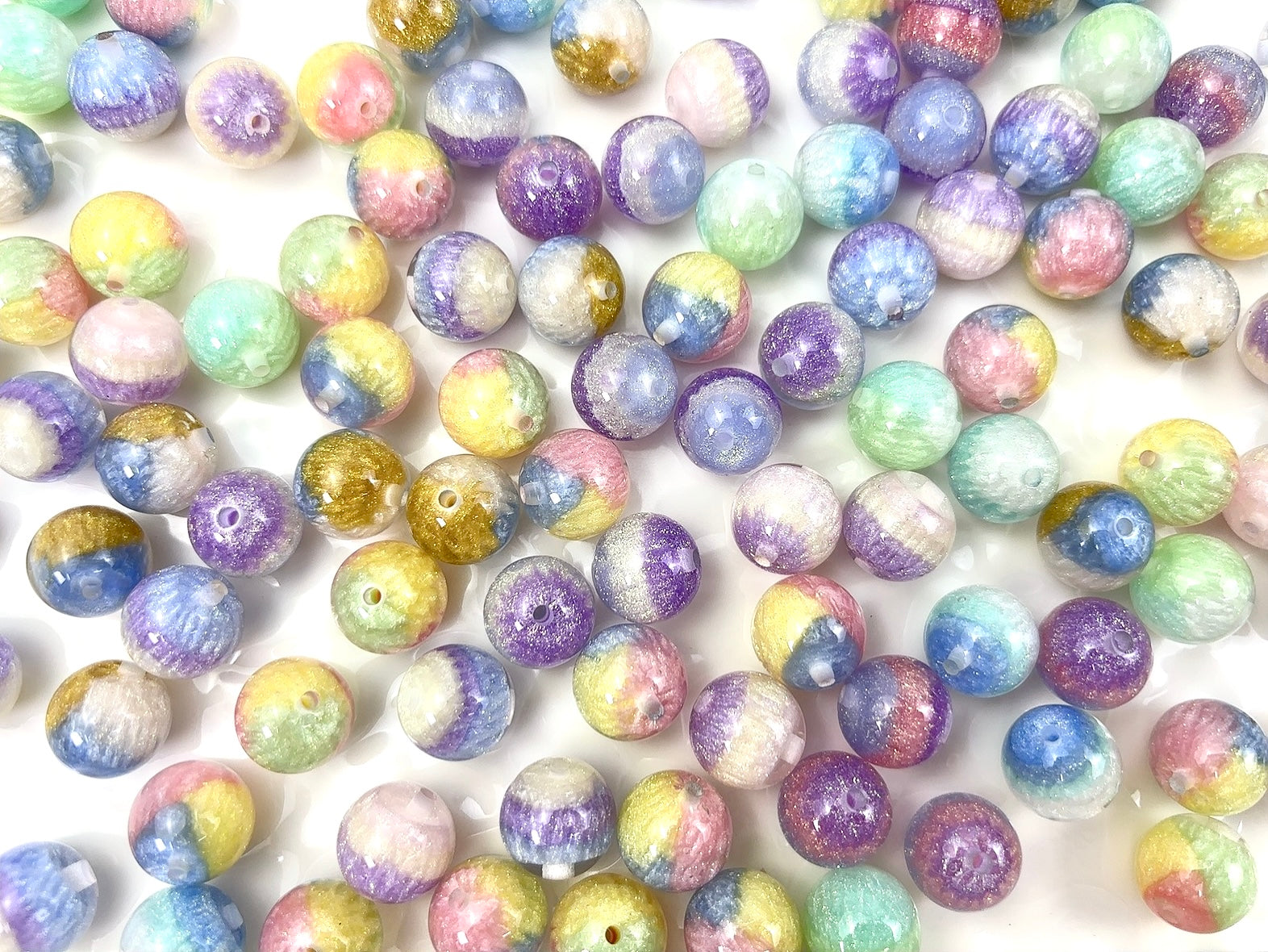 A.0159 新作樹脂ビーズ:夜光 色チェンジ油絵16mm