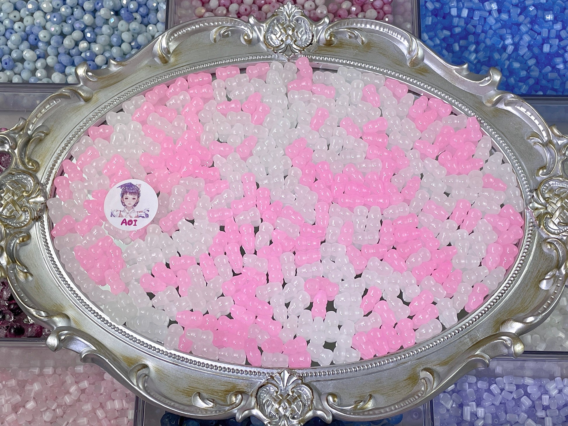 A.0593新作ひょうたんビーズ:ピンク白🩷🤍 8✖️14mm