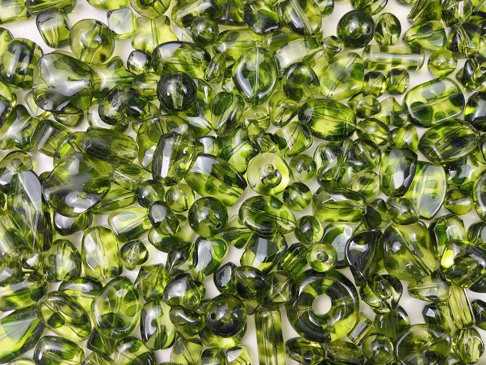 A.00001 881 新作アクリルビーズ:透明緑ヒョウ柄