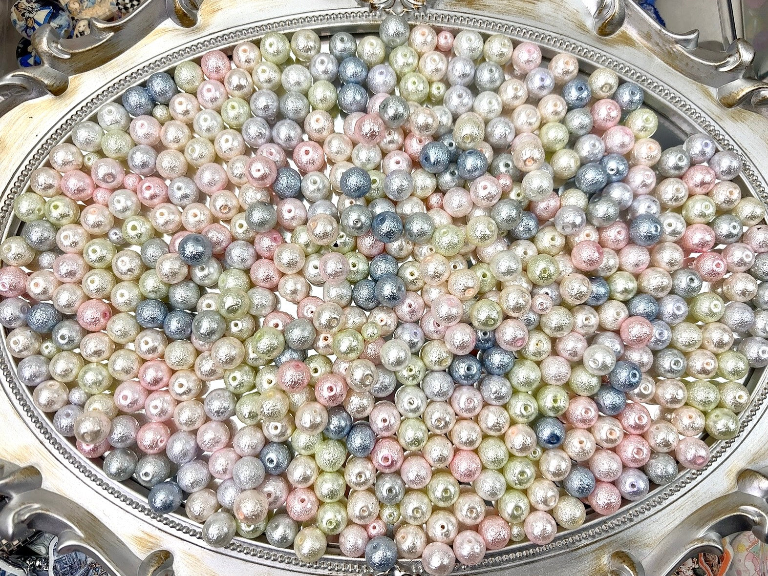 A.0005 新作ビーズ:ライチ紋シワシワガラスパール 薄い系 6-8-10mm