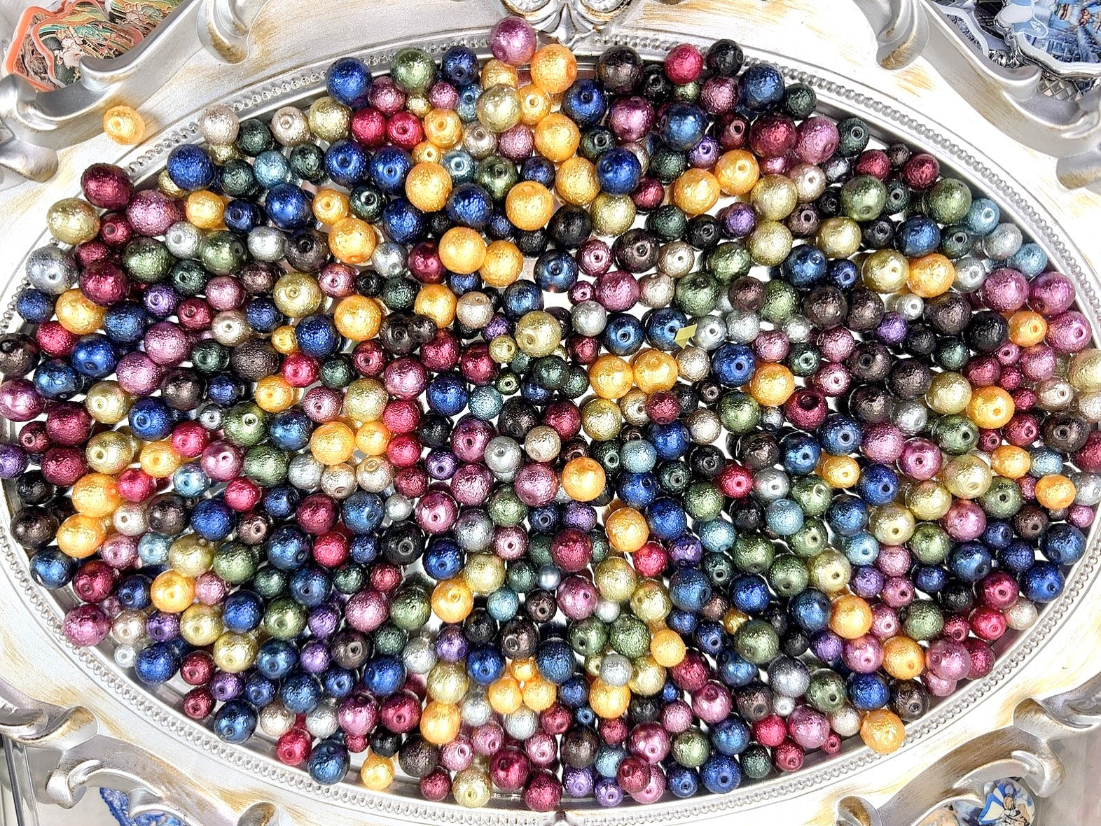 A.0006 新作ビーズ:ライチ紋シワシワガラスパール 濃い系 6-8-10mm
