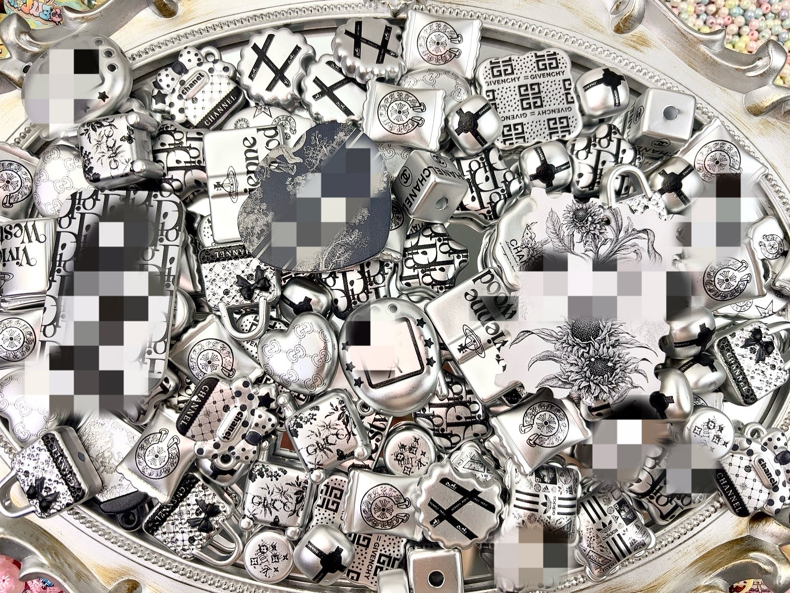 A.0059 新作シルバー加工ビーズ:マット系ロゴ